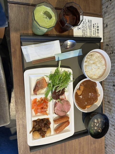 ごはん、汁物、おかず、飲み物などはビュッフェコーナーで選びます。