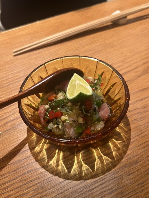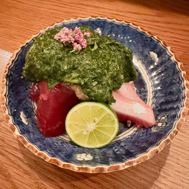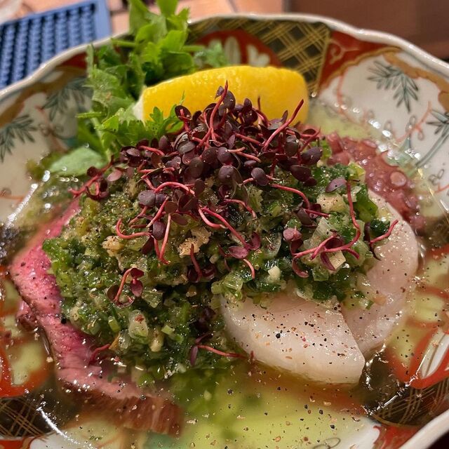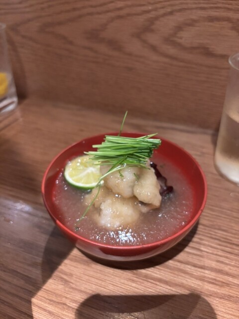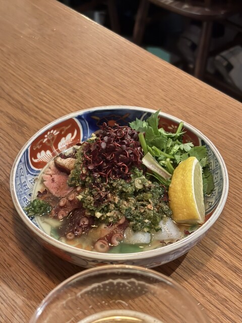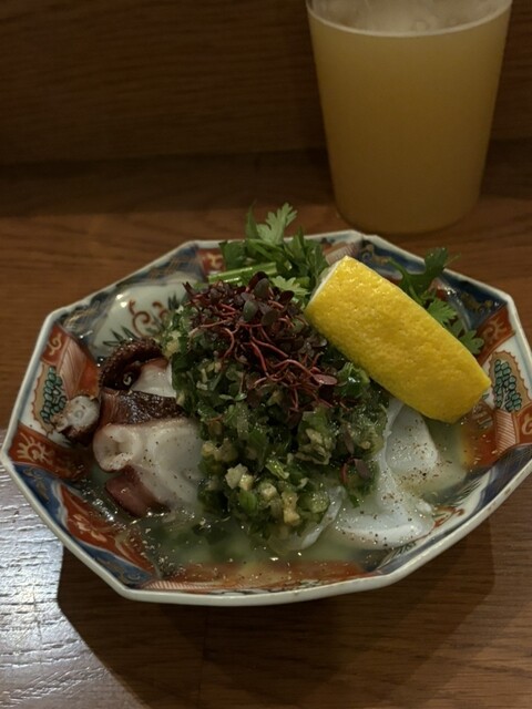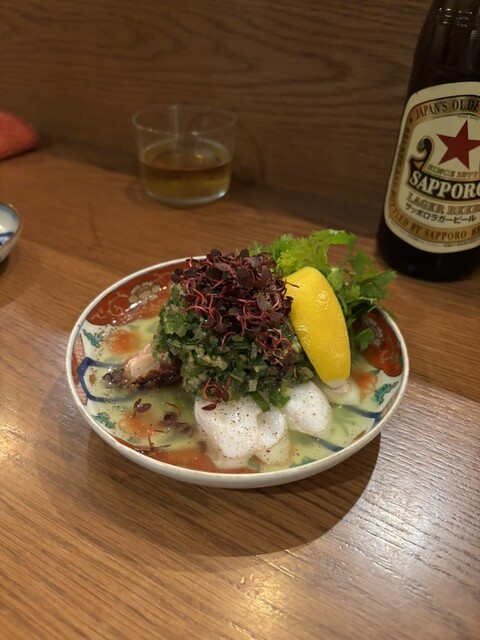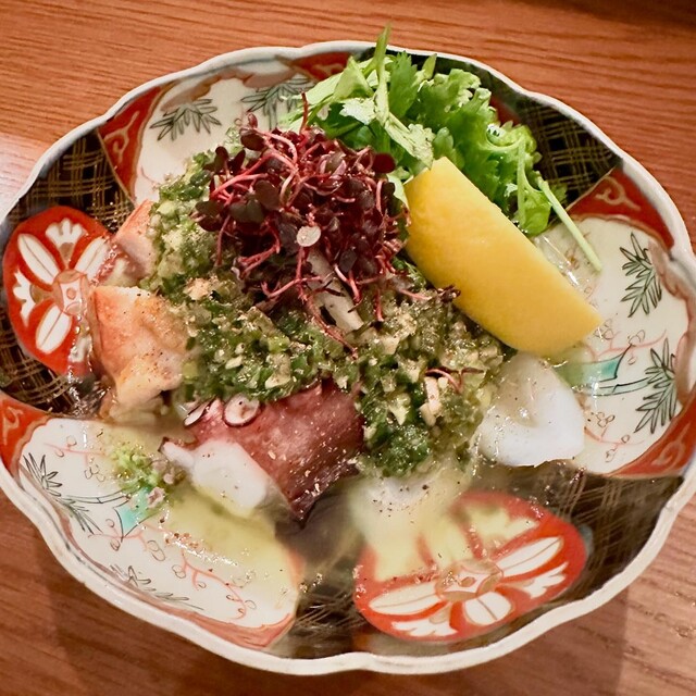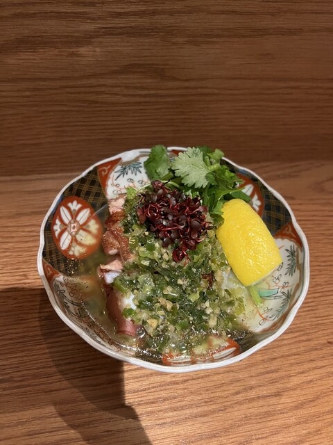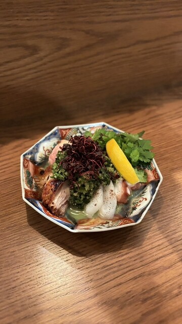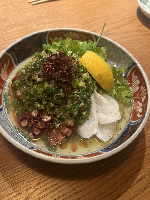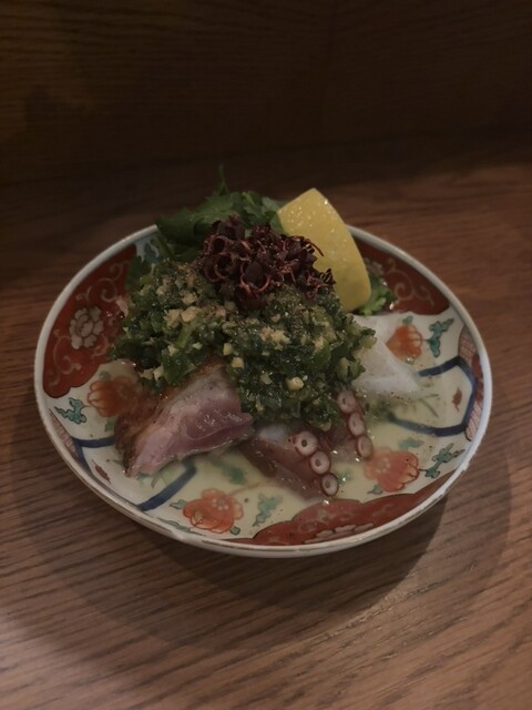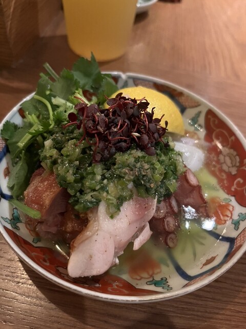たこor伊勢赤鶏たたき~九条葱と山椒ソース〜
