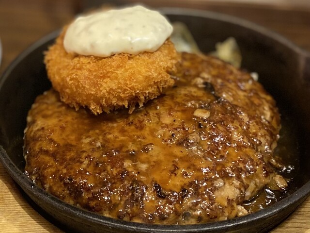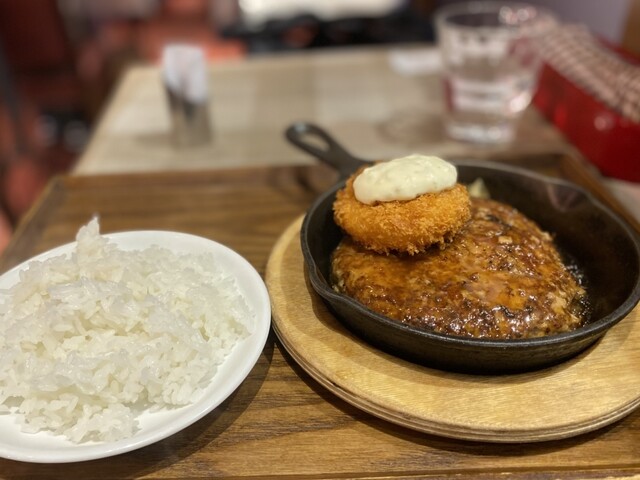 平日のランチで初訪問しました。 人気の老舗洋食店で、ランチ時間帯は店先に並んで待っているお客さんがいて、入店まで10分くらいかかりました。 今回は初めてなので、まずはスタンダードのハンバーグランチ(トッピングなし)を注文。 まず、ハンバーグのデカさにビックリ!! 鉄板と同じサイズ... 詳細を見る