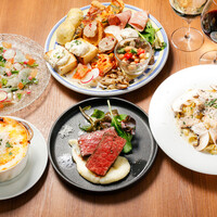 お皿いっぱいの前菜盛り合わせから魚料理、自慢の和牛のステーキまで大満足いただけるコースです。ワインにぴったり。時間を忘れてゆっくりとお楽しみください。