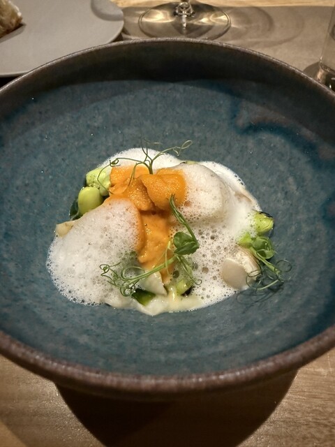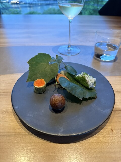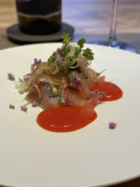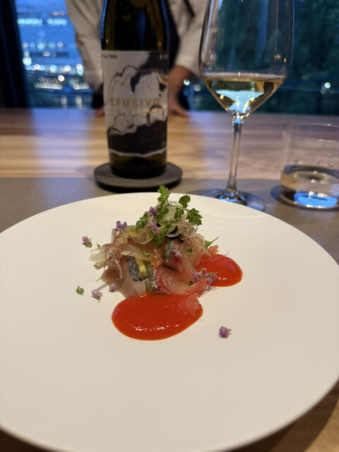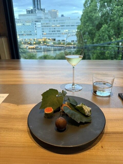前回気に入ったので、結婚記念日に利用しました。料理8品にペアリング8種のコースを予約。 生憎の雨風ですが、中はゆったり、目の前は雨でも綺麗な八軒屋浜。 シャンパーニュ、アンソラン。 ブッラータ、あまおう&生ハムと水牛モッツァレラ。 あまおうと生ハムの塩気、モッツァレラのコクが相まってめっ... 詳細を見る
