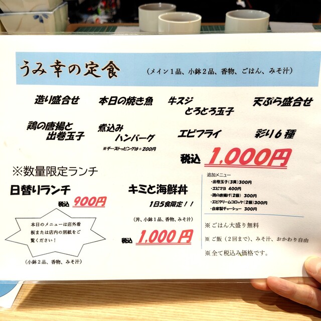 どの定食を選んでも税込1,000円という価格設定はコストパフォーマンスが高く、ご飯と味噌汁がおかわり無料なのも嬉しいポイント。