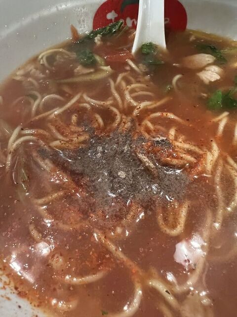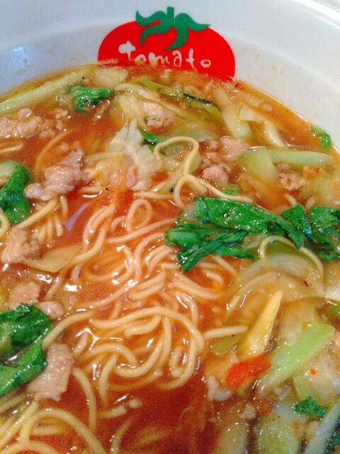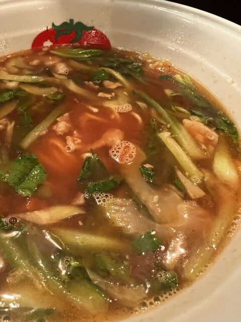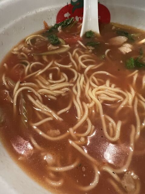 ▪️トマトラーメン未体験の方は、トマトの酸味のするラーメンがあまり具体的に想像できないと思いますが、それほど酸味は強くなく「トマトのフレーバーが入っているラーメン」程度に認識していただければよいかと。どちらかと言うと、セロリの方が自己主張が強い感じです。