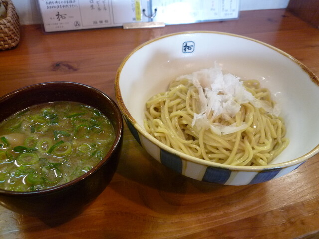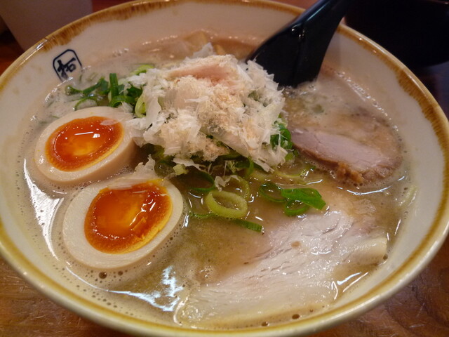 梅田から西長堀まで徒歩1時間。百名店ラストとなるこちら。土曜18:30で待ちなし入店。 鶏と豚のWスープが人気の店。お店の看板は和風とりとんですが人気なのはどうやらつけ麺の方、ならばそちらをいただきましょう。 模範的なビジュアルのつけ麺が着丼。麺は少しウェーブがかった平打ち太麺でツルツル... 詳細を見る