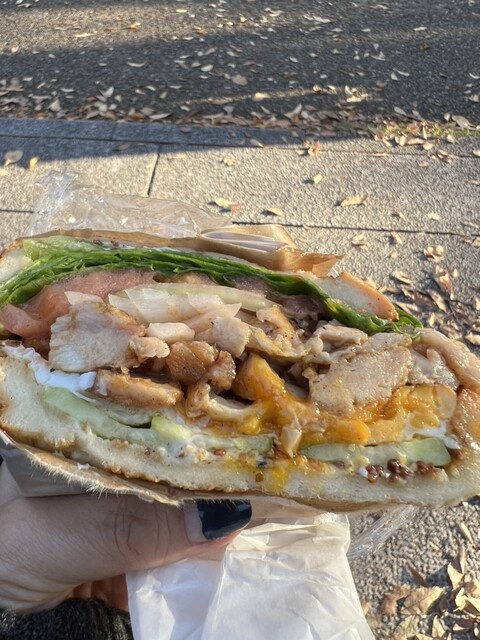 気持ちの良い11月の小春日和にサンドイッチ。 ジューシーケバブのサンドイッチを半分ずつのシェア。 あー気持ち良くて、そして美味しい。 思ったよりあっさりとペロリと頂きました。... 詳細を見る