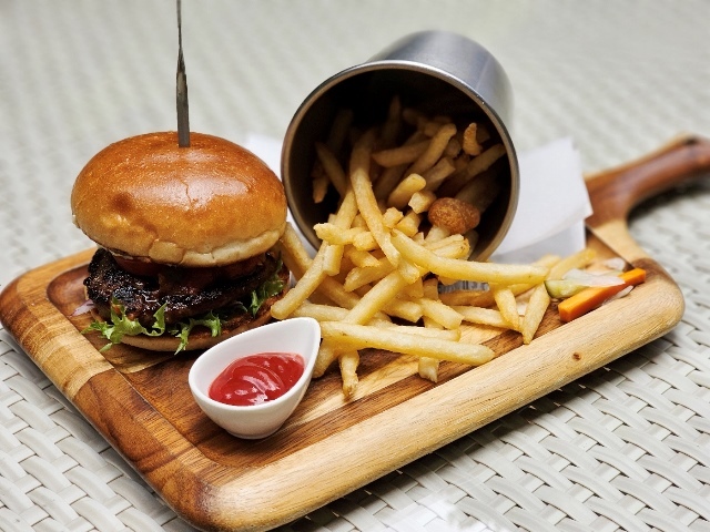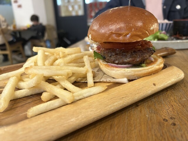 ランチプレート、ケーキに続いて、ハンバーガーもいただいてみました。