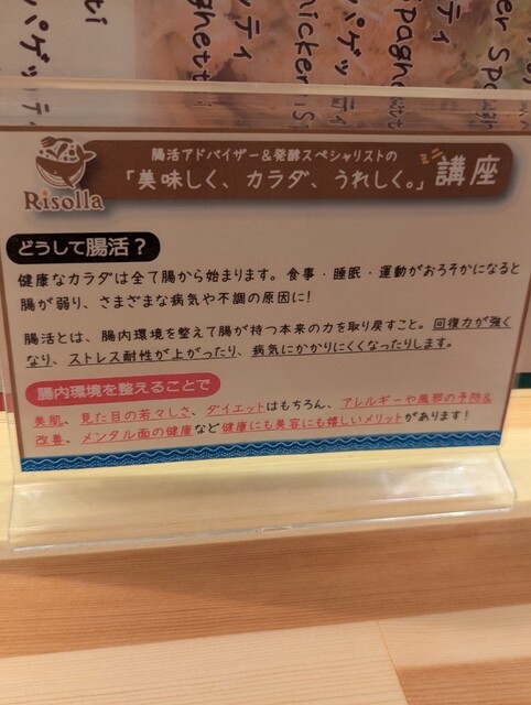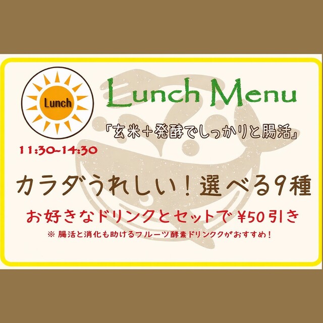 特別栽培米の玄米と自家製糀調味料を駆使。手作りにこだわり、化学調味料や精製調味料不使用のカラダにやさしいお店です。お昼はしっかり腸活ができる3種のサービスプレートをご提供。「腸活プレート」は黒米入り玄米ご飯に発酵料理の組み合わせでお勧めです!夜はリゾットやパエリア・パスタ・ピッツァ、一品料理など、カジュアルに腸活イタリアンをお楽しみいただけます♪