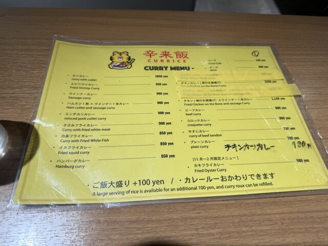 定期的に体が欲してしまう辛来飯(カーライス)。席に着いたら、紙にオーダーする内容を書いておばちゃんに渡すのが、ここの流儀。