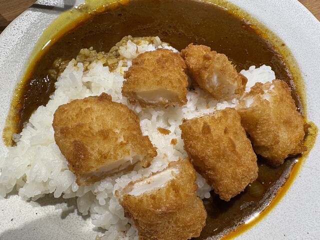 イカフライカレー@850の辛口をいただきました、機械式の回転鍋で大量に仕込まれているカレーは実に美味しく、大鍋で炊くことによって複雑に味も深みが出るのか、とても美味しいです。
