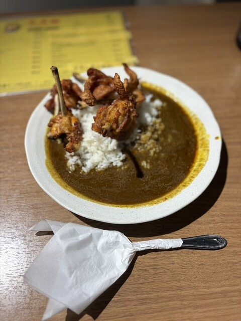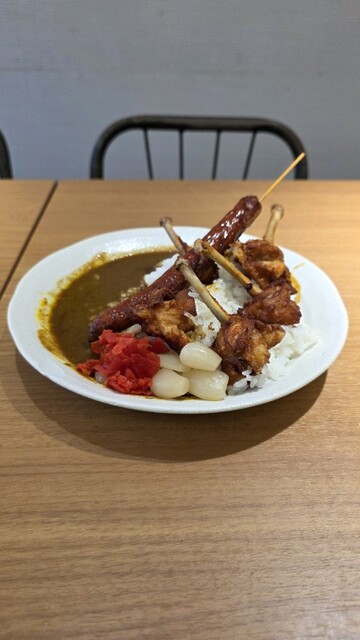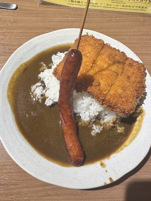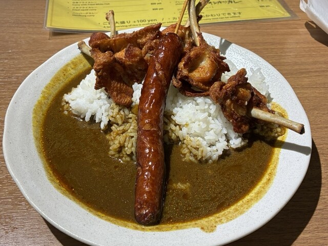 この店を紹介する記事でよく載っている唐揚げとウインナー串が入ったカレーはかなりのボリュームですので気をつけてください...