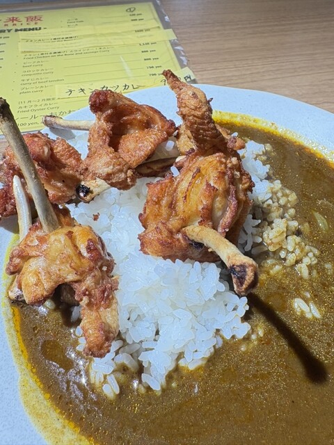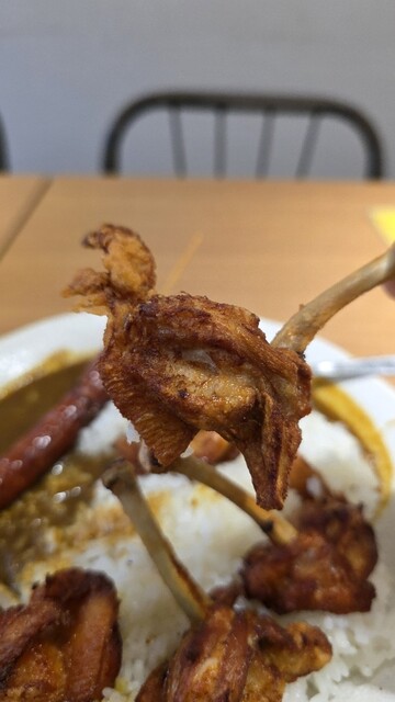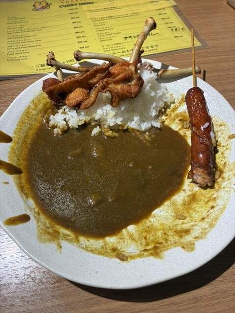 チキン(骨付き唐揚げ)とウインナー1本カレーの辛口を注文やんか♪