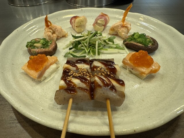 このお店に来たら外せないのが、串焼き盛合せ、淡路牛ステーキ、お好み焼き、そしてもや...