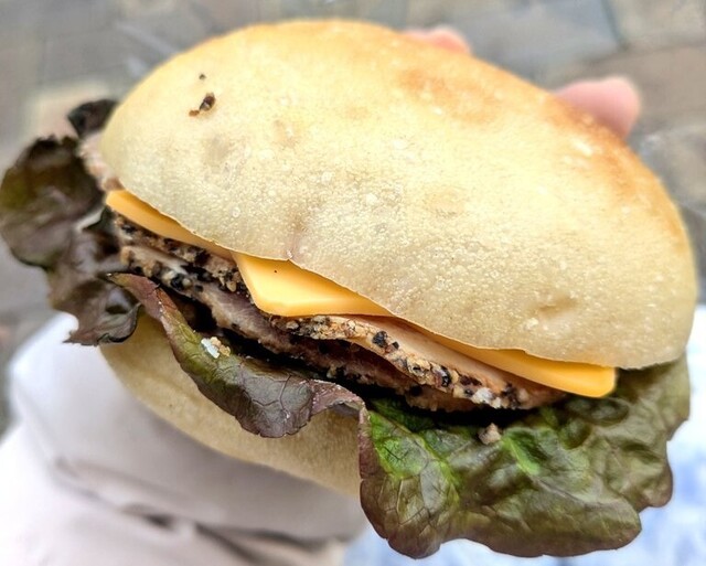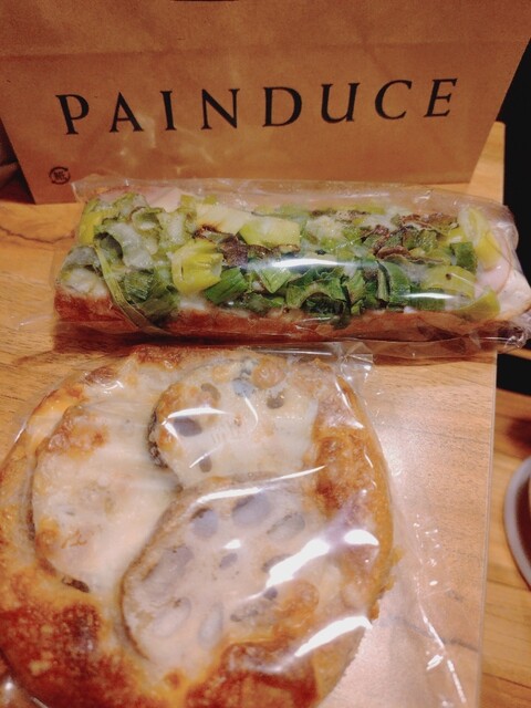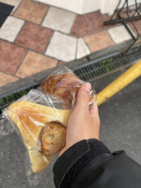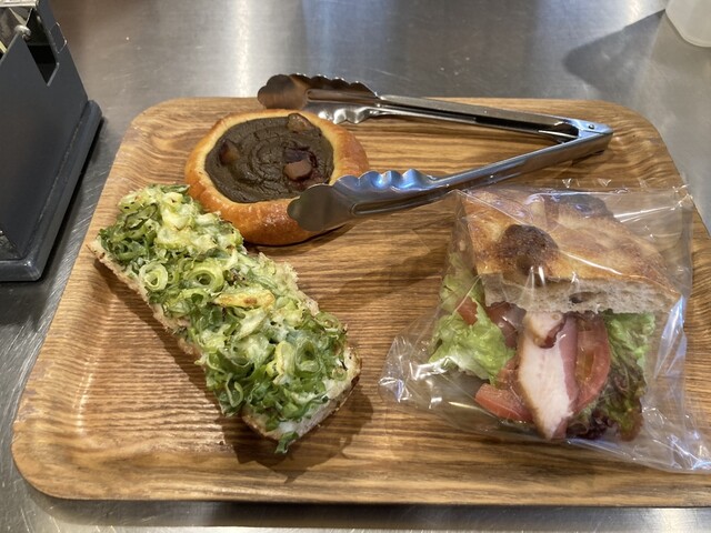 ネギとチーズののっけパン(名前は適当です笑)と、くりの何かが乗ってるブリオッシュと厚切りベーコンのサンドイッチを購入。