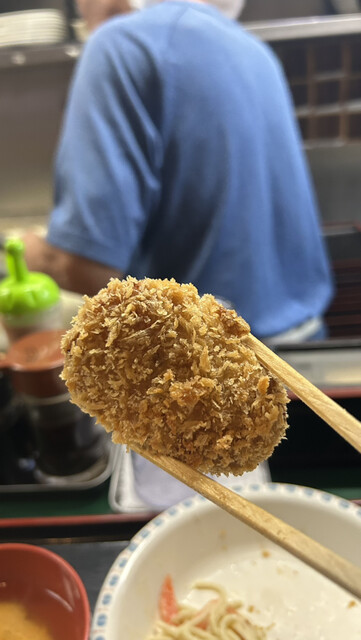 基本どの定食にも付いてくる名物コロッケ、今回は+1個足しました♪...
