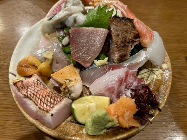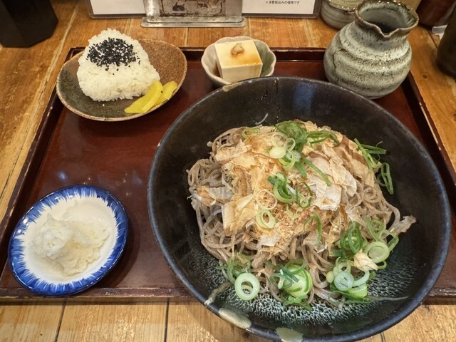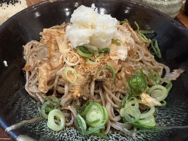 お昼は店主の出身地である福井県の玄蕎麦(蕎麦の実)を丸ごと石臼挽きした手打ち蕎麦の定食。当店の蕎麦はそばの香り・味がする麺であり、すり立ての本山葵を使用しています。 夜は春・夏・秋・冬、旬の食材を毎日市場で仕入れ、お造り、焼物、煮物、野菜物、揚物、鍋物、もちろん手打ちそばも提供しております。 天然の魚や旬の野菜の旨さを知って頂けるよう、心がけています。 化学調味料は使用せず、素材の旨さ!!で勝負し...ています。