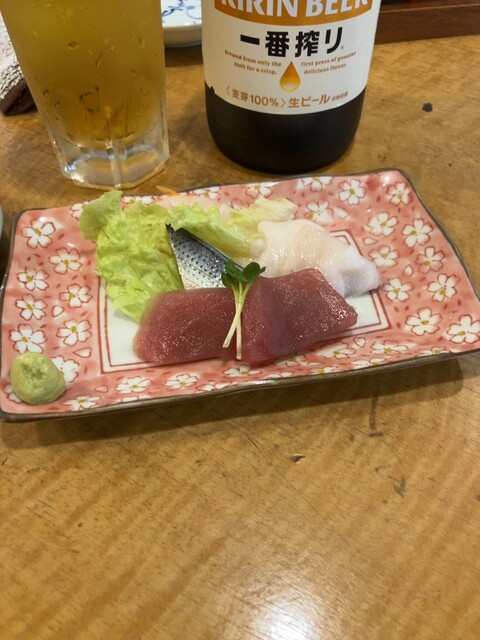 350円でまぐろ、アジ、ヤリイカ3種盛り