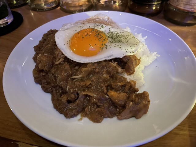 確かにメニューたくさんあるが薄暗いので老眼で見えず、とりあえず1杯目タンカレーにしといた