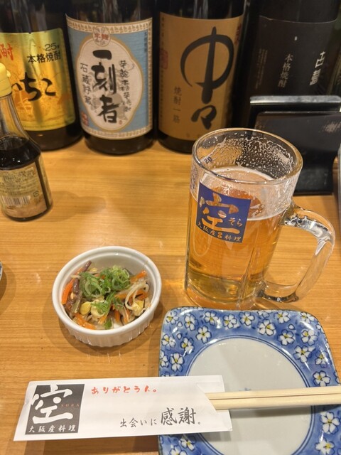 「浪花正宗」、「荘の郷」といった大阪ならではの地酒を気軽な雰囲気の中でいただけるお店を探しているうちに辿り着いたお店が、こちらの「空」さんでした。 よくよくさらに調べてみると、提供される料理も泉州沖の地アナゴや地ハモをはじめとする地魚や、阪南地方の野菜や肉などの食材が中心だという、まさに地元大阪に対するこだわり満載の居酒屋さんである様子。 手軽そうな雰囲気といい、これはまさに私にとってど真ん中... 詳細を見る