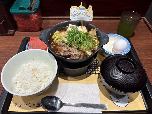 牛豆腐チゲに、厚切り豚カルビ焼肉が付いた牛豆腐キムチチゲ厚切り豚カルビ焼肉定食 1180円にしましょう。玉子は生玉子にします。ご飯は大盛にします。