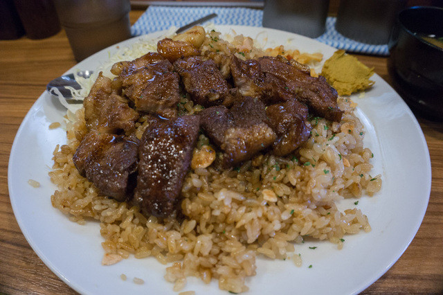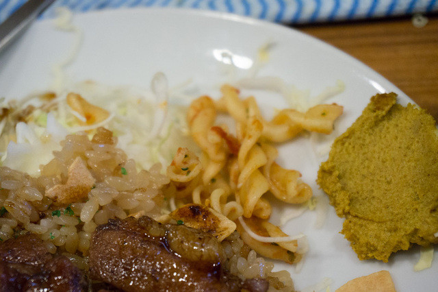 最近のお気に入り。HONMACHI豚テキ。 水はセルフ。 あまり美味しくない味噌汁。 豚テキ500gオンザガリバタライスだい、温玉付き。 全景。 ... 詳細を見る