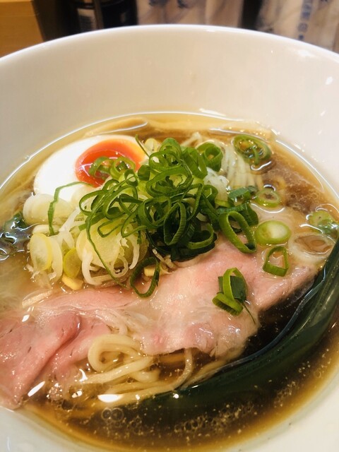 鶏そばプレミアム 並 930円 薄茶色に濁ったスープに豚バラの炙りチャーシューが2枚と低温調理のロースチャーシューが1枚、味付け玉子半分、細切りのメンマ、ネギが乗っている。 スープは名古屋コーチンの丸鶏から取った無化調スープとの事。オイリーだが醤油の甘みとスープのコク、鶏油の香りが食欲をそそる。... 続きを読む»