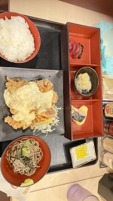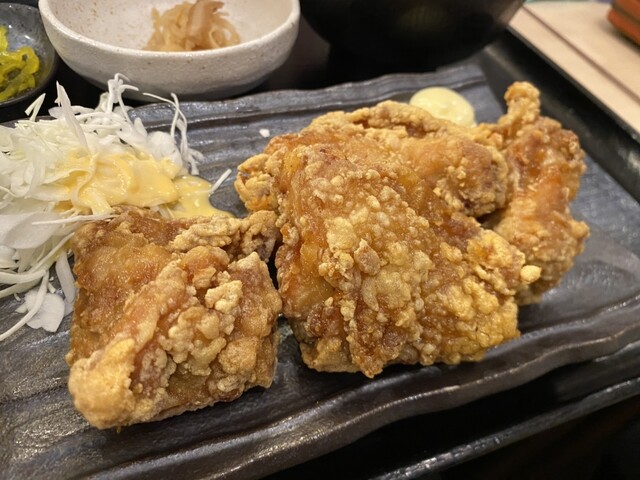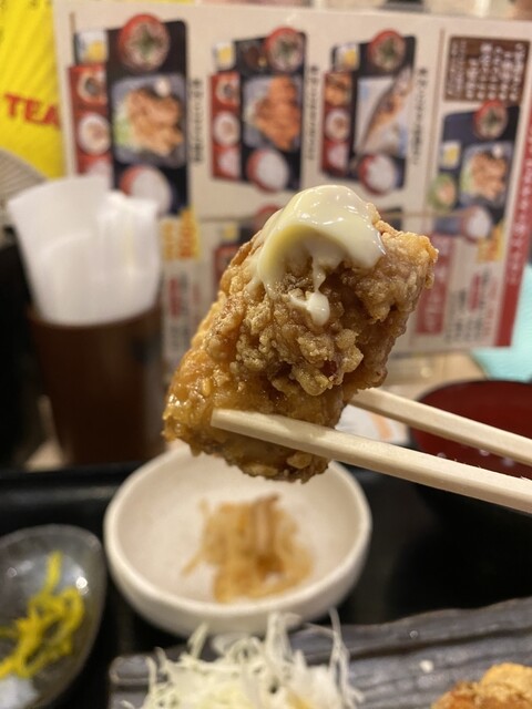 チキン南蛮そのもののデカさにビックリします。控えめな小鉢もどーでも良くなります。その小鉢もちゃんとご飯を盗んで行きます。メインのチキンをガツガツ食べて行くのですが、ご飯の配分間違えてしまい、足らなくな...