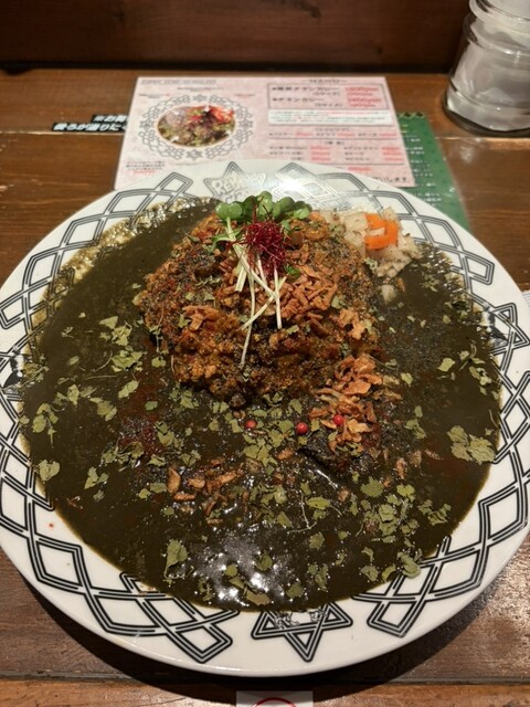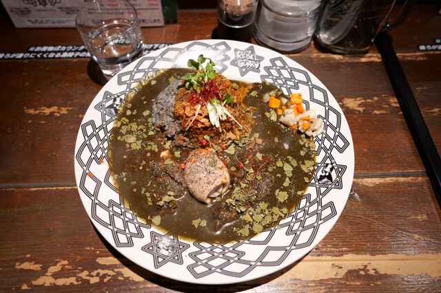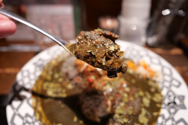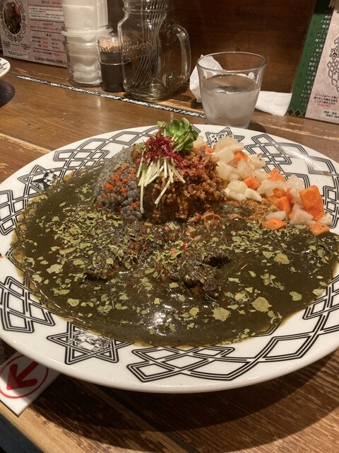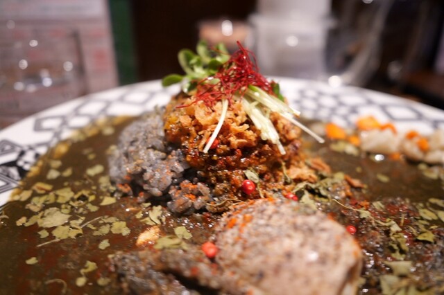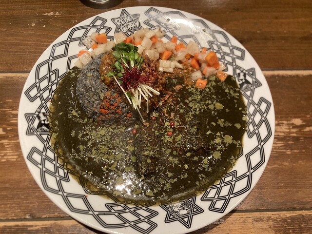 大阪市の本町にあるカレー百名店のひとつ。 スパイスカレーが大きく分けて二種あって、炭をいれた黒っぽいものと、プレーンなもの。 メニューの一番上にあったのが黒い方だったので、初回... 詳細を見る
