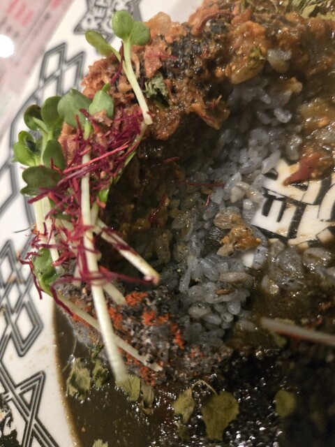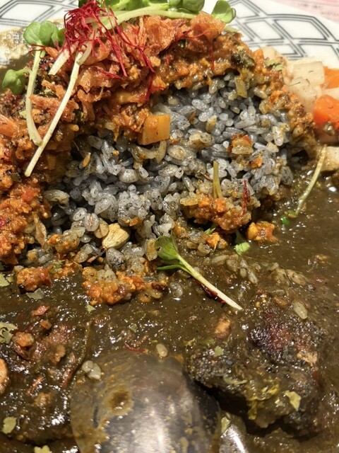 スパイスカレーが大きく分けて二種あって、炭をいれた黒っぽいものと、プレーンなもの。