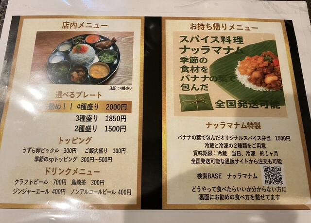間借り営業をしていたスパイス料理ナッラマナムが移転実店舗オープン!! |