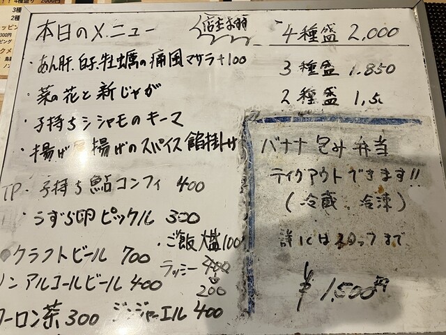 この日のカレーは、味噌を入れたホルモンのスパイスカレー、エゾシカのスパイスカレー、ホタルイカとキャベツのカレー、ひき肉とひよこ豆のキーマカレ...