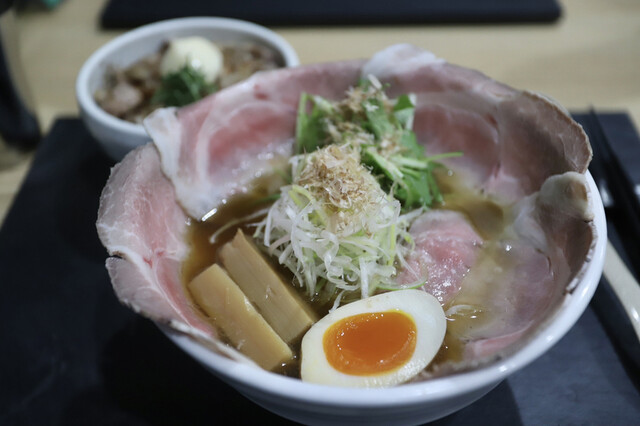 大阪本町「醤油らーめんピース」。メディアにも取り上げられる人気ラーメン店。夏季限定で冷製鰹まぜそばが販売中! 冷製鰹まぜそば900円 夏季限定で販売されている冷製鰹まぜそば... 詳細を見る