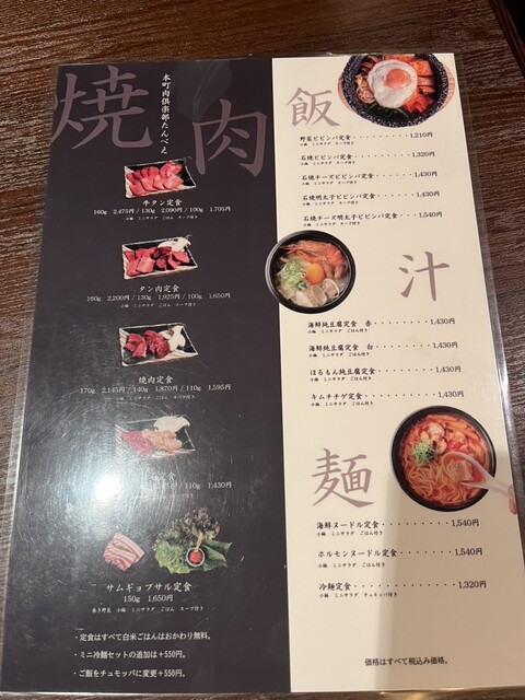 お昼は焼肉だけではなく、韓国料理などもあるので、リーズナブルに利用できます。本格的に焼いて食べたいなら焼肉定食たちがオススメで...