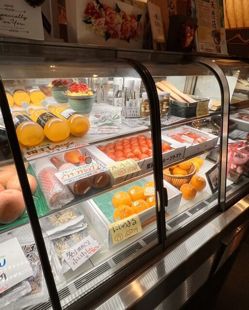 入店してすぐ目の前には、ショーケースに美味しそうな果物たち
