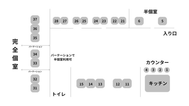 | 空間・設備 | 席が広い、カウンター席あり、ソファー席あり、バリアフリー、電源あり、車椅子で入店可 |