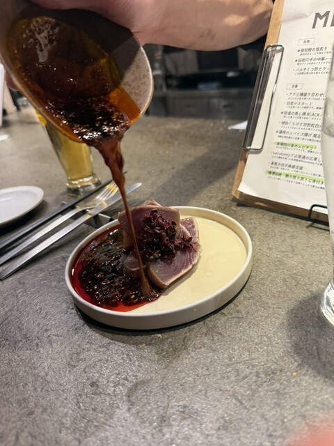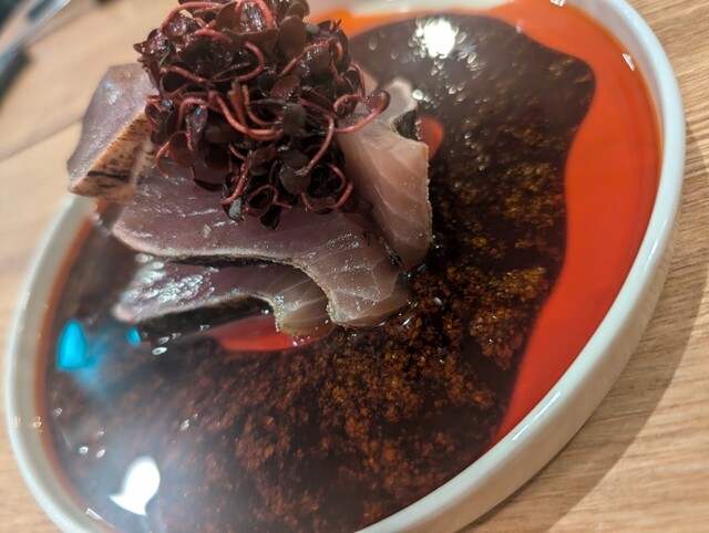 鰹に旨旨な紅ソースをたっぷりつけて!