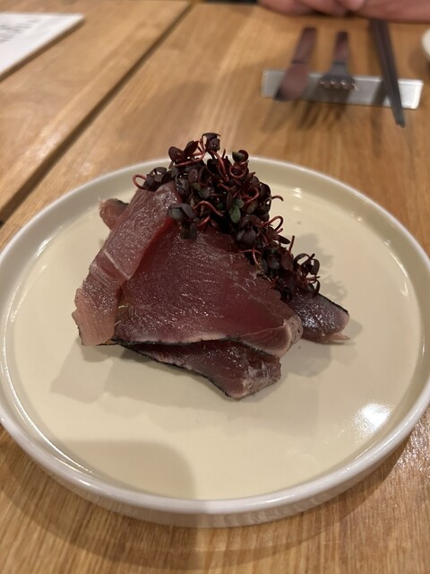 高知県産の鰹や黒毛和牛、渡り蟹、大ぶりの白子 料理に使われている素材もさることながら 一つ一つのお料理の完成度が高く 何を食べても間違いはないだろうと思いました おすすめメニューにありました鰹の紅ソ...