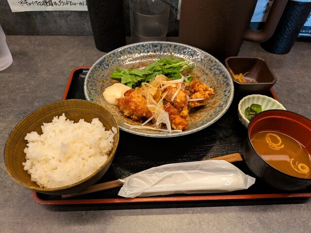 堺筋本町から谷町四丁目方面に少し歩いた場所にある居酒屋さん。鶏料理を提供しているお店で、お昼はランチメニューも展開しています。 13:00過ぎに伺いました。 店内は典型的な... 詳細を見る