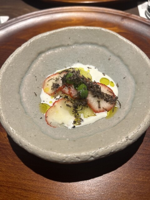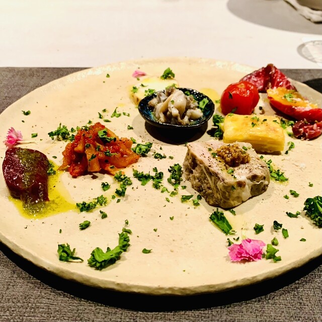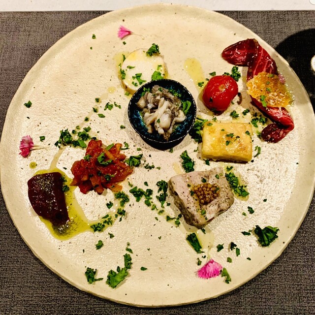 店名にイタリアンと入ってるけど、魚介はほぼ扱わない、肉を美味しく食べることを追究されているお店です。 堺筋本町駅から6〜7分歩きます。 初めてだと分かりにくい、敷地内に建物が個別に建って、飲食店が1階ないし2階に入ってます。 背の高い、めちゃくちゃイケメンのオーナーシェフさんが目の前で料理してくれる、1階オープンキッチンカウンター。 2階にもギリギリ8人まで入るそうで、個室のような... 詳細を見る