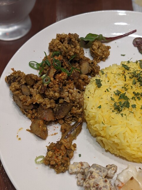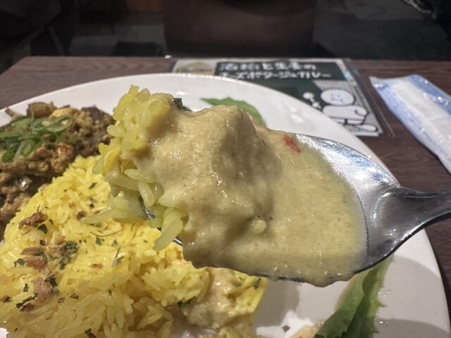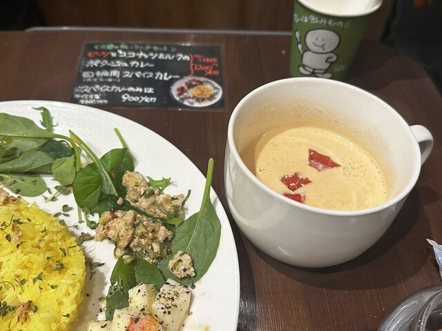 ポタージュカレーは酒粕としょうががしっかり効いている食べたことのないものです。トロトロのルーを口に含むと酒粕の香りと共に甘さが広がります。でも甘口というわけではなくて、生姜がいい仕事をしているのですぐに体が...