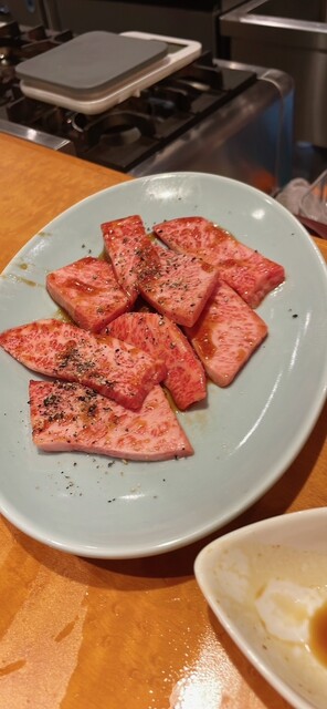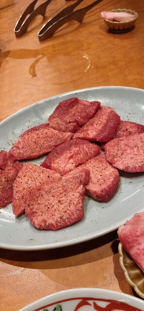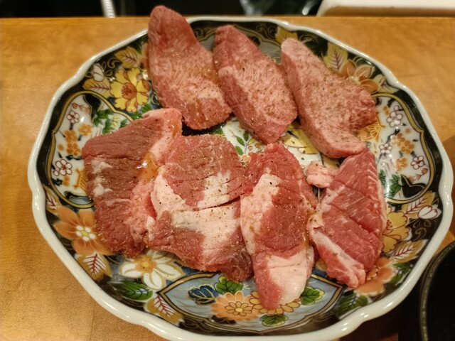 今回は名物と聞いていた「タンの食べ比べ」と「上ハラミ」を中心に注文。まず登場したタンは...