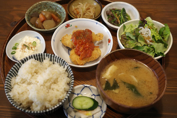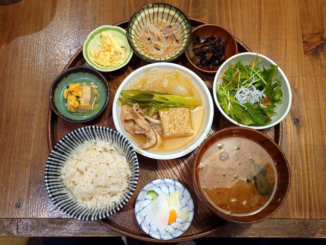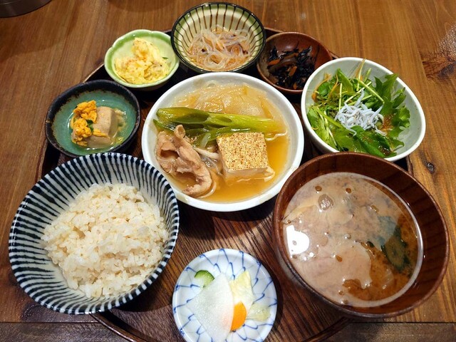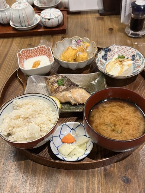 元気定食 栄養バランスを重視したヘルシー志向の定食をいただきました。 メイン料理は鳥取県大山鶏の唐揚げで、南蛮ソースがかかっており、ネギが添えられています。 衣はサクッとした食感で、ソースの酸味が効いていて食べやすい味付けでした。 副菜は手作りのお惣菜が3種類と、しらす入りの野菜サラ... 詳細を見る