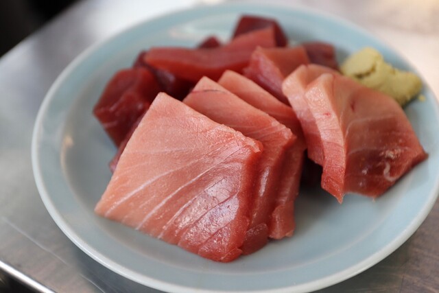 派手なパフォーマンスに隠れがちですが、良質な海鮮をいただける海鮮料理の立ち飲み屋さんで、仕入れの質の高さが魅力。週末は観光客の方々で大行列ができているので、平日の夕方が狙い目です。