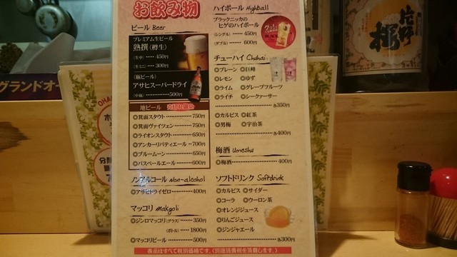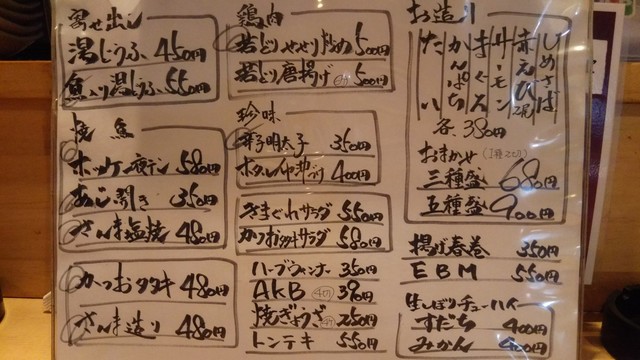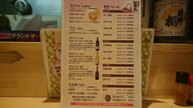 | ドリンク | 日本酒あり、焼酎あり、ワインあり、カクテルあり、焼酎にこだわる |