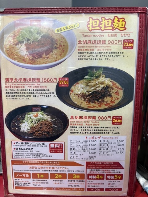 ササラの担々麺は酸味が無いのが嬉しくて、黒胡麻は特にコクの深さを感じるには酸味は邪魔。
