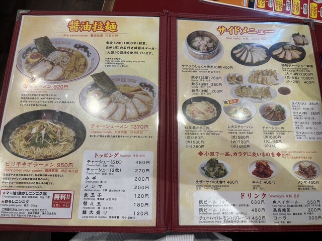 ランチタイムのため、「麺大盛り無料」嬉しい。