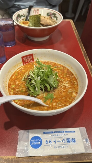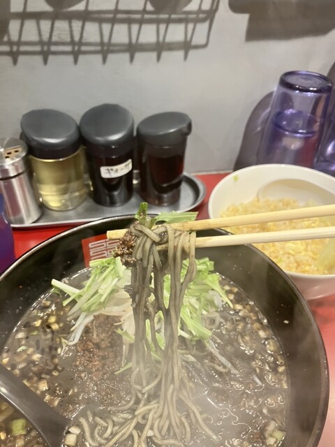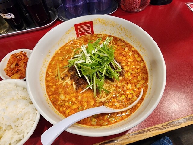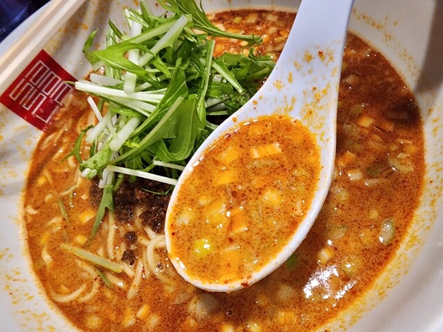 3月に入って海老味噌終わってたので、1年ぶりくらいに金胡麻を頂きました。辛さ追加無しで全く辛くありません。一口目のスープで美味しいと呟いてしまった。後半はお酢を3押しくらい入れて、すりゴマをたっぷりか...