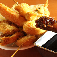 【全品税込価格】大阪ならではの下町の味!名物の串揚げ・串カツメニューは定番から変わり種まで常時50種類以上♪120円~とリーズナブル!アットホームな雰囲気の店内は居心地抜群◎カウンター席は、目の前で揚げたてアツアツの串カツが楽しめる特等席★2Fは各種飲み会利用もできるテーブル席となります。各種飲み会オススメ【飲み放題付】店長おまかせ満腹コース3,500円◎