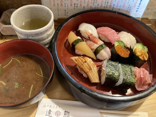 京橋に、こんなにも感動的なコストパフォーマンスを誇る本格的なお寿司屋さんがあるとは、本当に驚きです!「逹鮨」は、まさに京橋界隈で働く人々の間で密かに愛されるランチの聖地と言えるでしょう。 本格的なカウンターに座り、目の前で職人さんが手際よく握る姿を眺めながら、1,000円程度で最高の寿司をいただけ... 詳細を見る