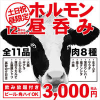 ※土日祝の16時受付まで限定※【生ビール・角ハイOK!飲み放題付】ホルモン昼呑みプラン(肉8種)11品