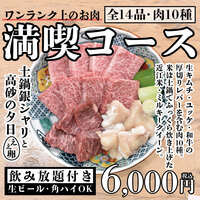 【生ビール・角ハイOK!飲み放題付】ワンランク上のお肉を堪能!満喫コース(ユッケを含む肉10種)14品